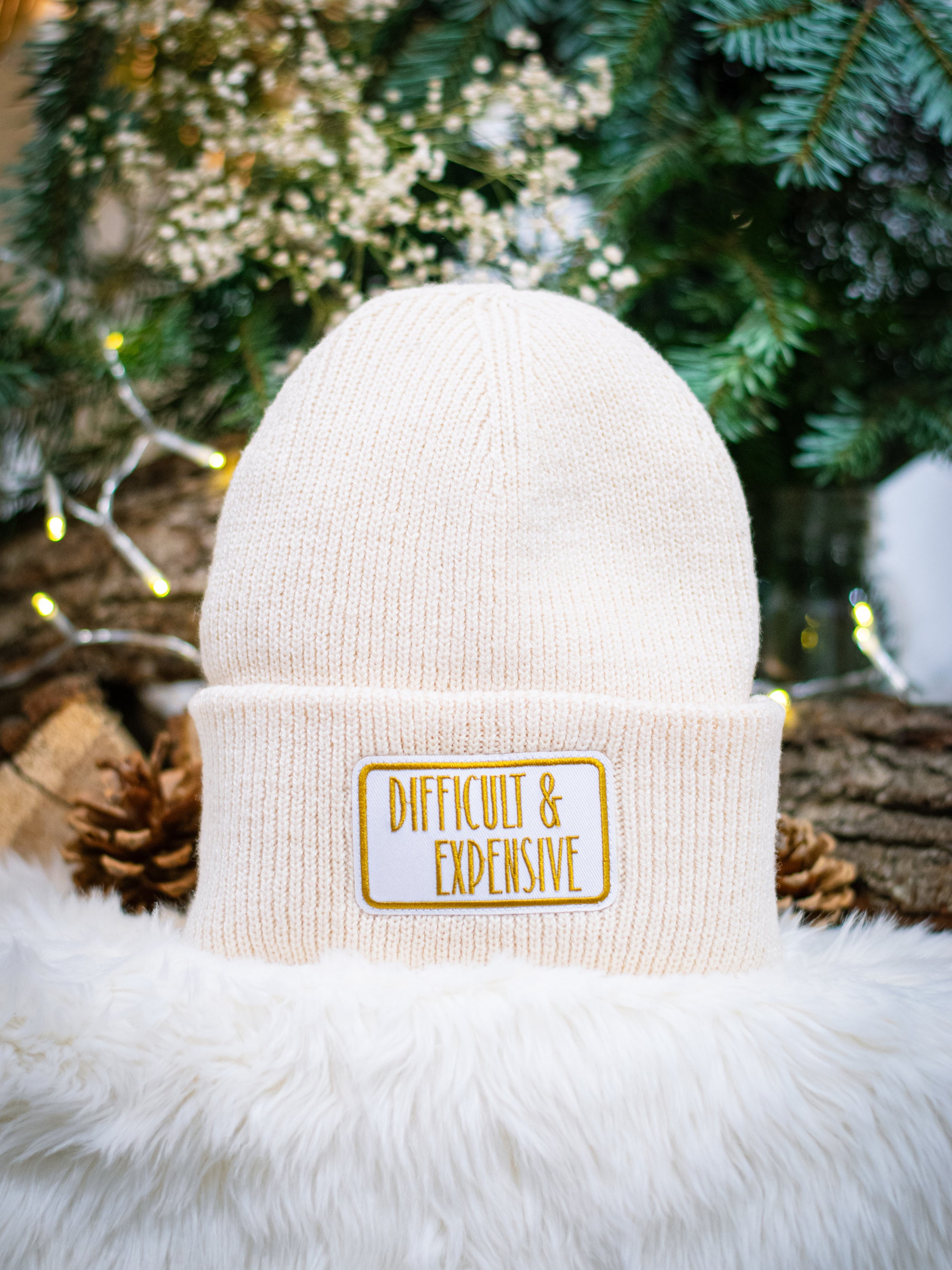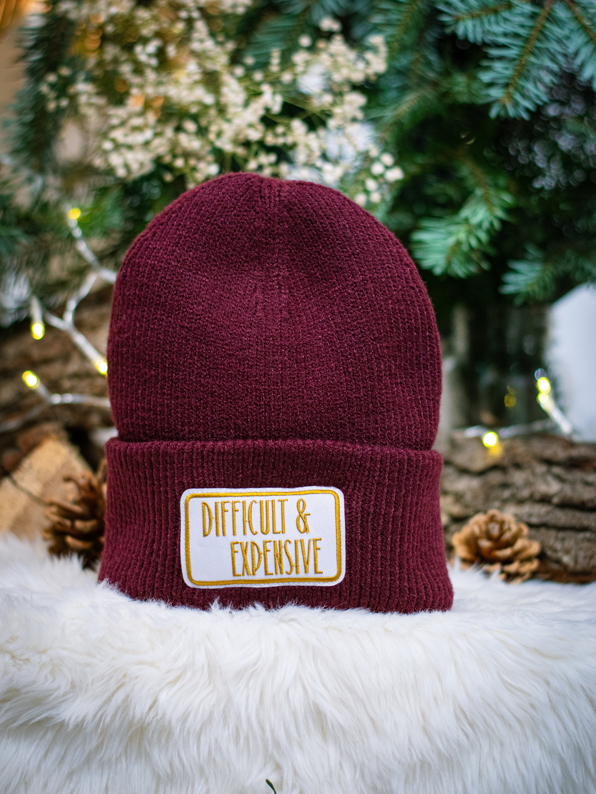 "difficult & expensive " in den Farben "red, vanilia white & black"
