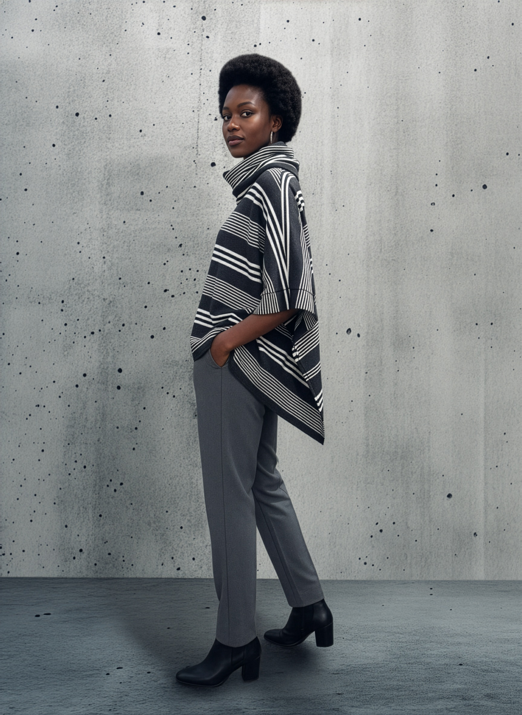 Unsere Ponchos zeichnen sich durch die harmonische Kombination verschiedener Grundschnitte aus. Die innovativen Ärmel und der lässige Rollkragen verwandeln diesen schlichten Poncho in ein spannendes Kleidungsstück.